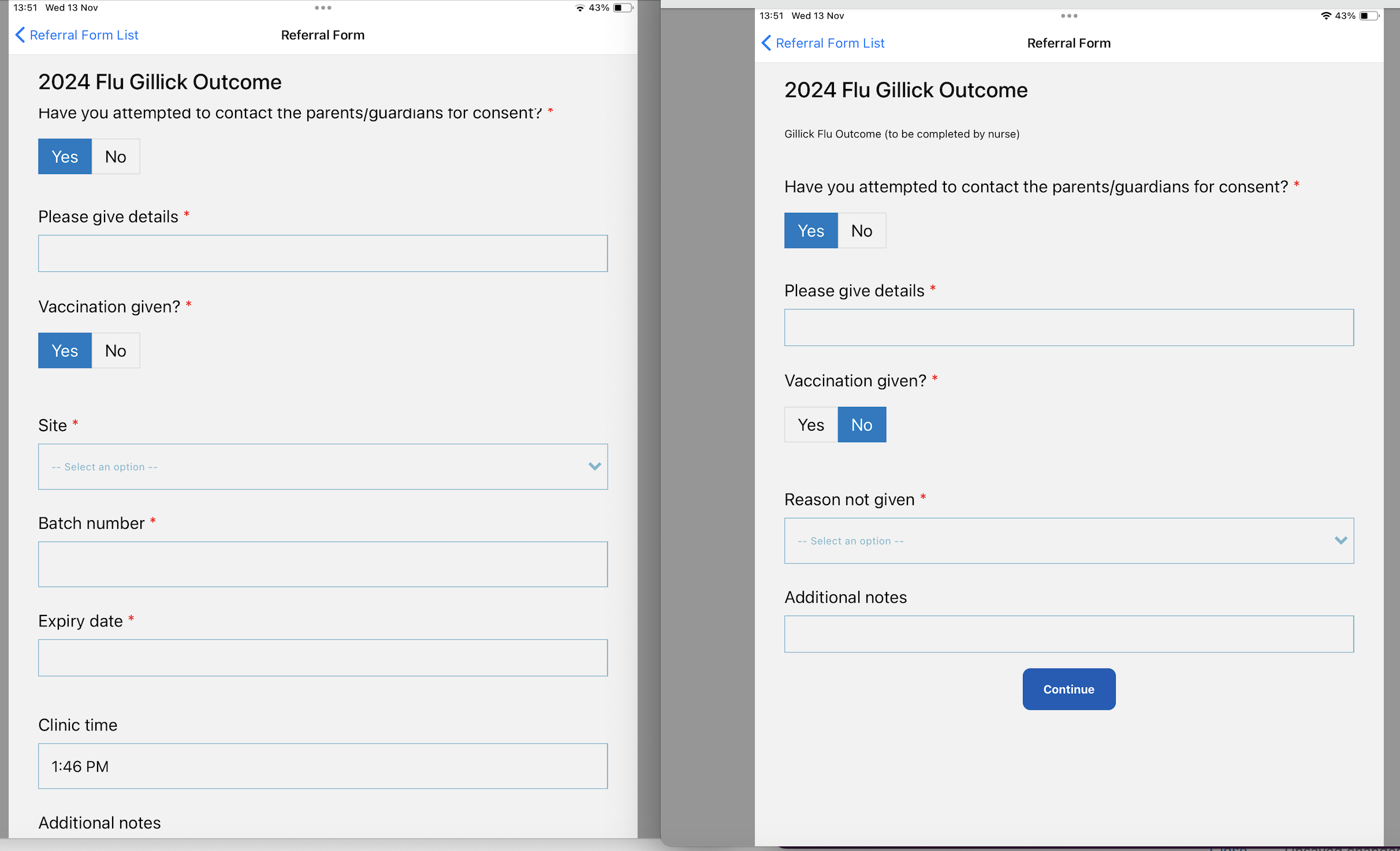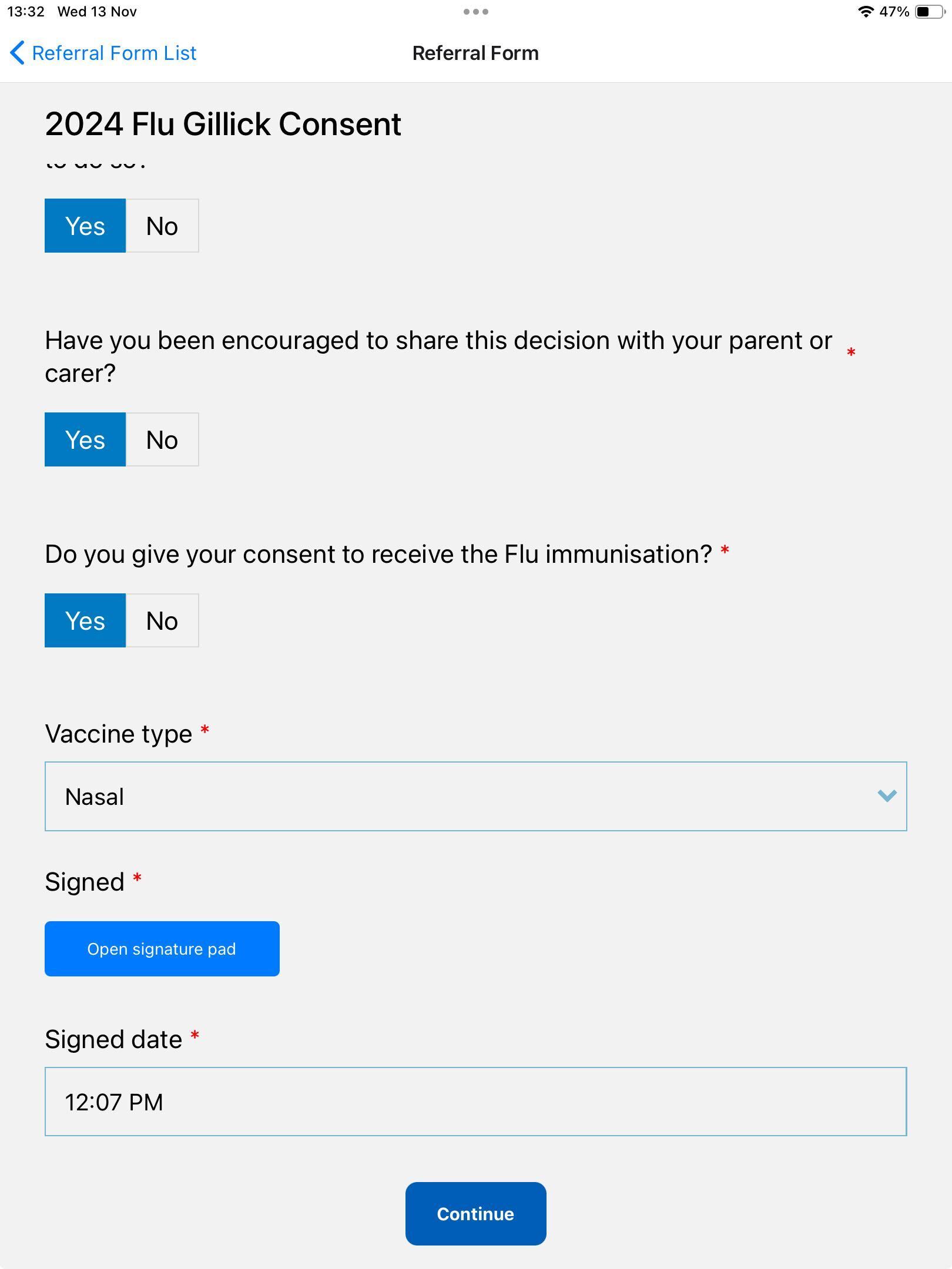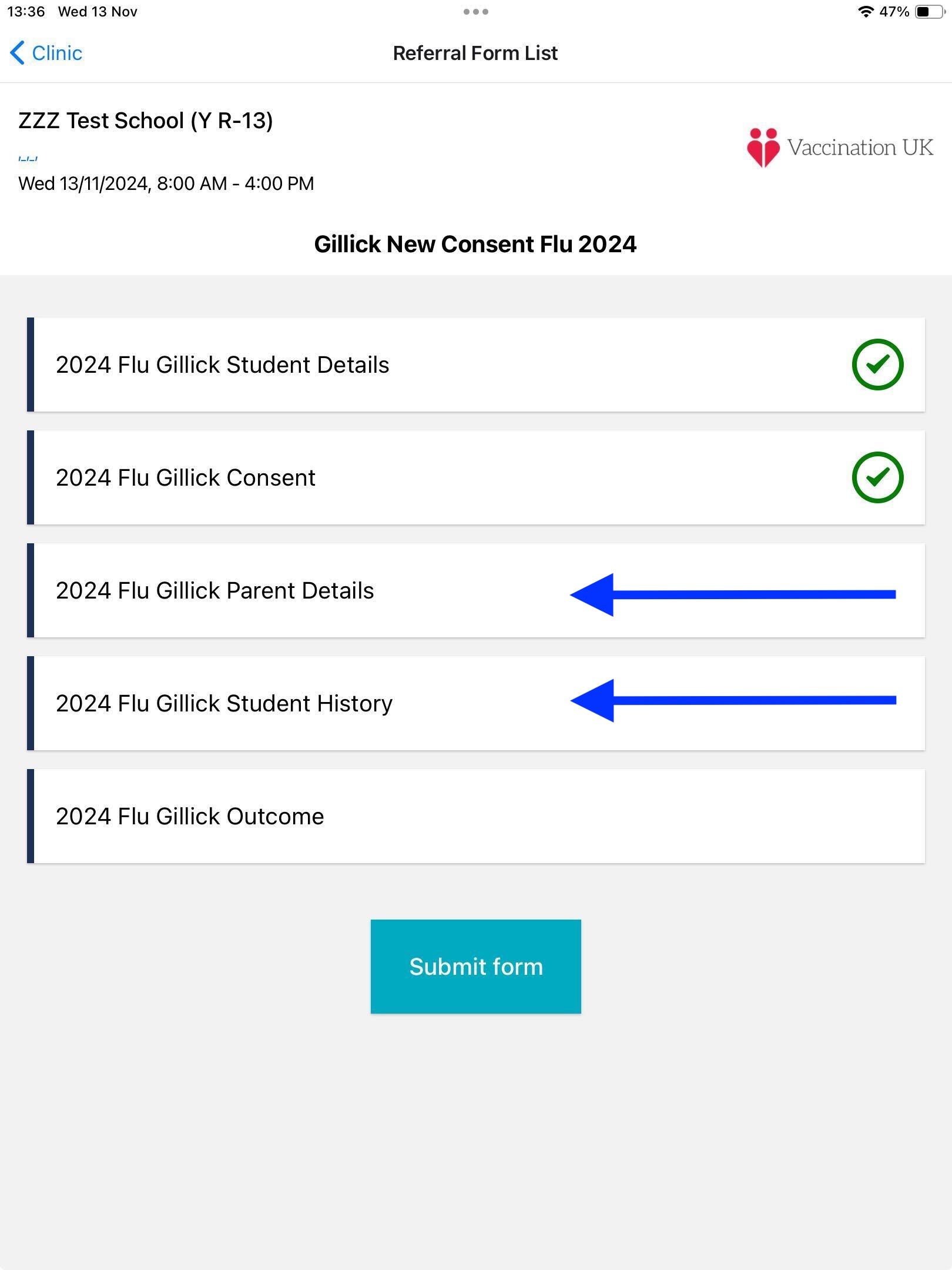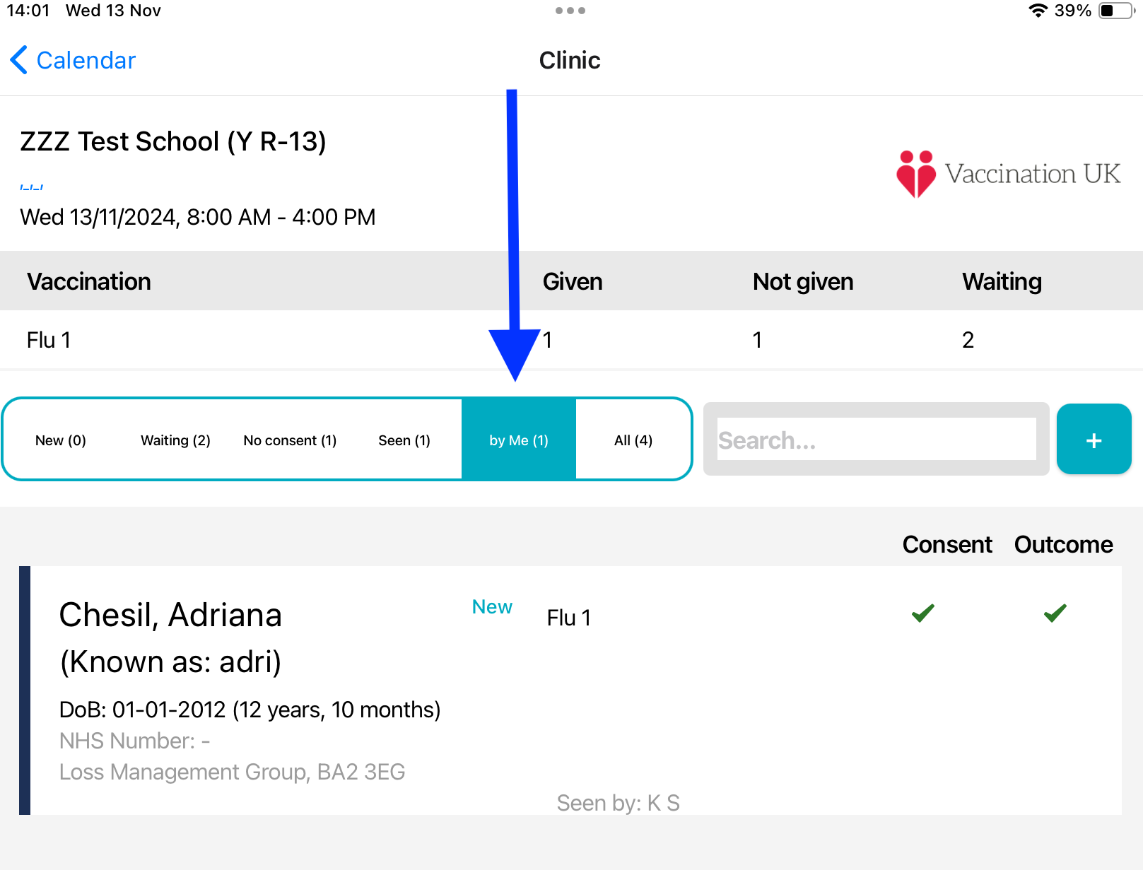 Log in to your mobile device and choose your school clinic. Gillick competence functionality is available for Flu 24/25 and can be rolled out across other immunisation programmes as required by the customer.