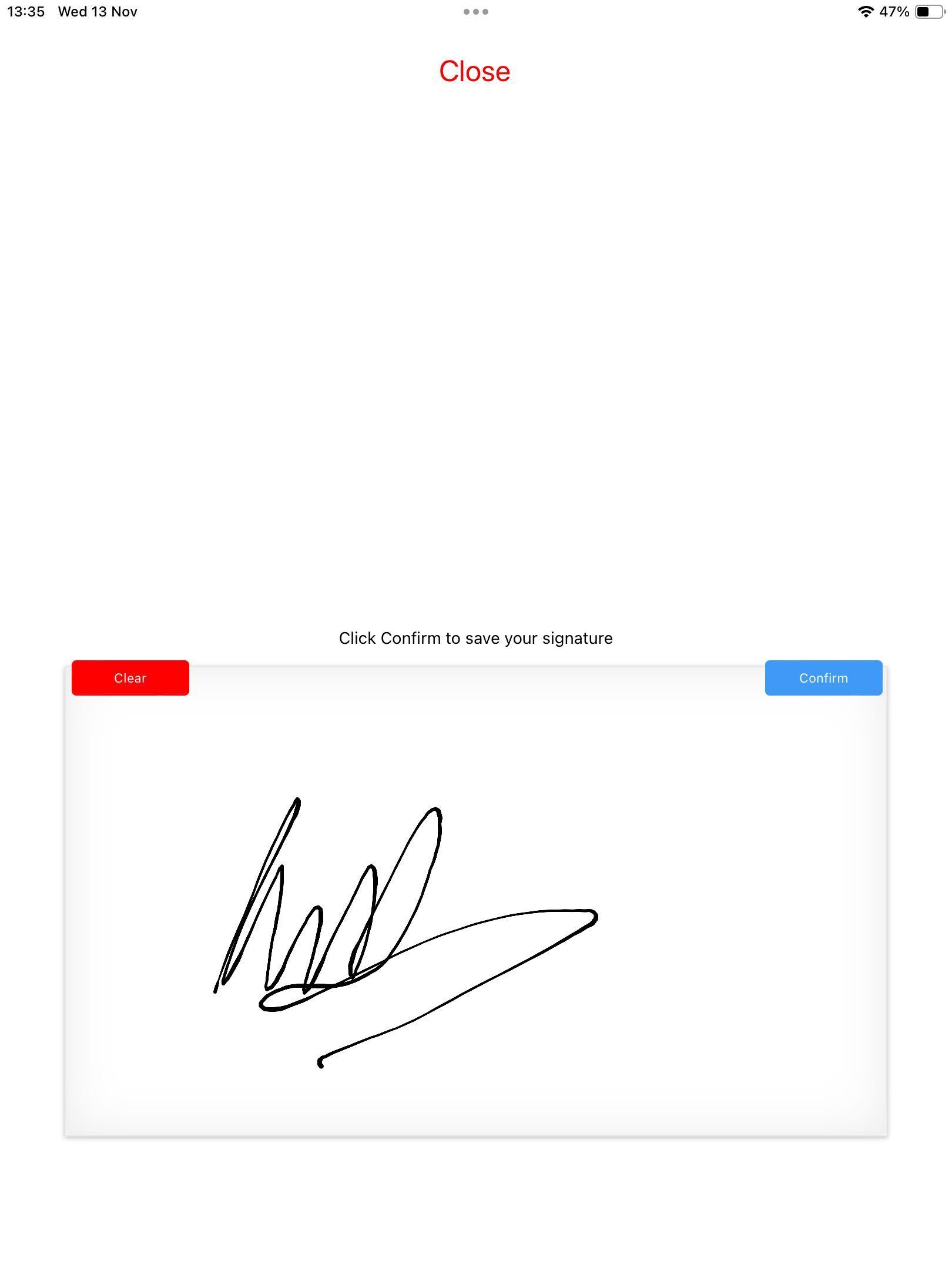 If the user is using an iPad, the student can use their finger to add their signature. If the user is using the Windows app, the student should hold down the left-hand button of the mouse and scribe their signature on the mouse pad.
