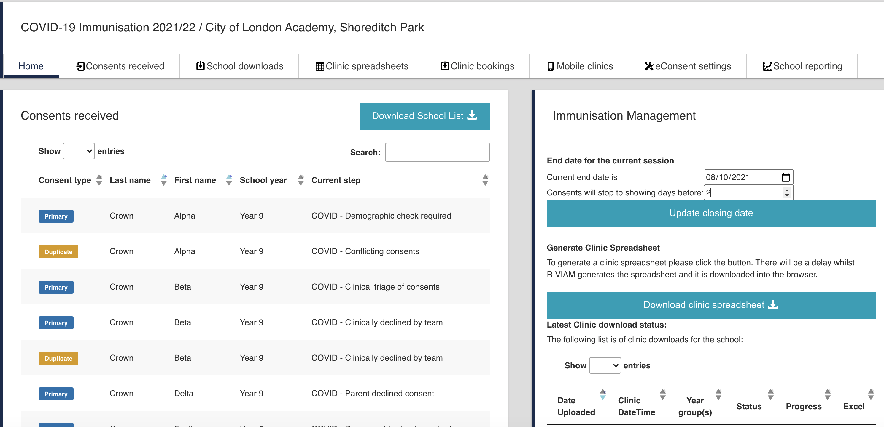 This will allow you to accept consent until the night before the school/clinic session and ensure the children appear on the school/clinic list.