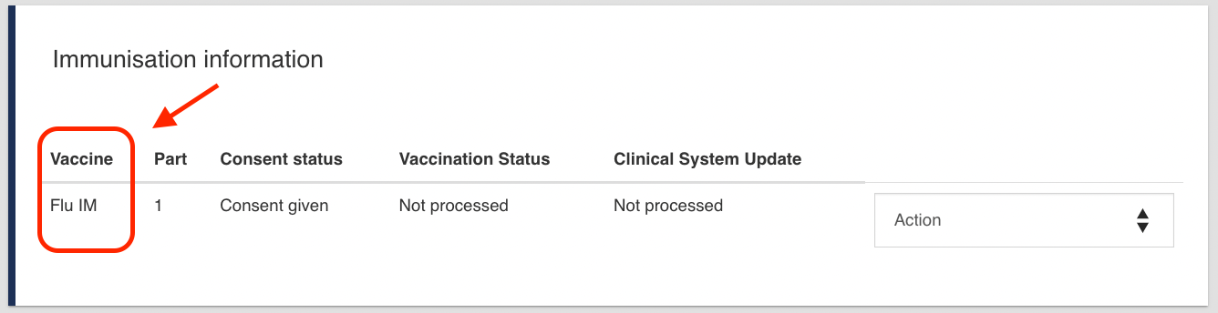 This will open a new page showing the vaccination record. You will see either Flu nasal or Flu IM in the vaccine type.