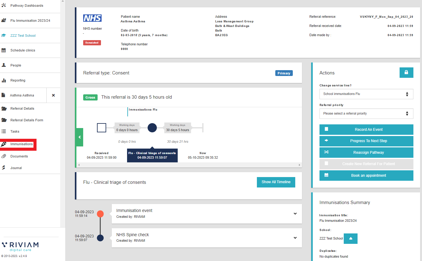 Select the immunisations tab (with syringe icon) on the left-hand side of the patient's record: