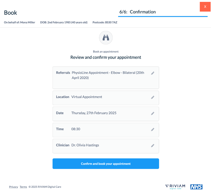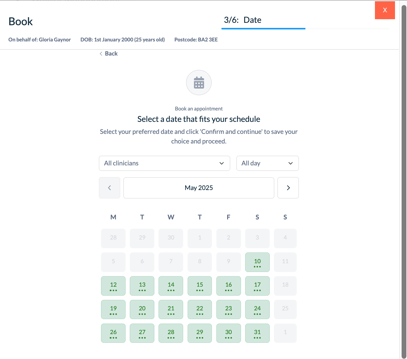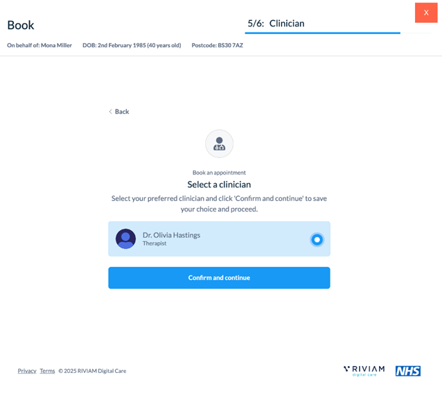 Select a clinician for the patient to see.