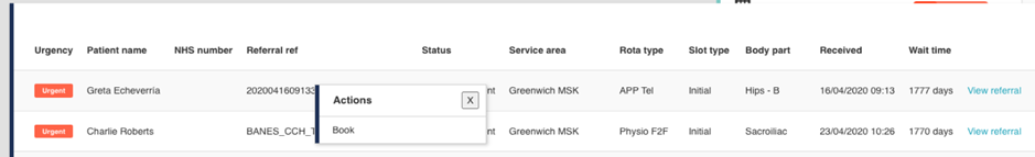 Take action to book an appointment, cancel an appointment, invite a patient to book, or remove a patient from the waitlist. From the waiting list, you can manually book, cancel, or send an invitation to a patient to book their appointment. You can also remove a patient from the waiting list as necessary.