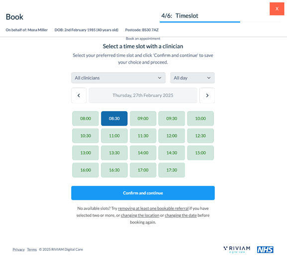 Choose the date and time slot of the appointment.