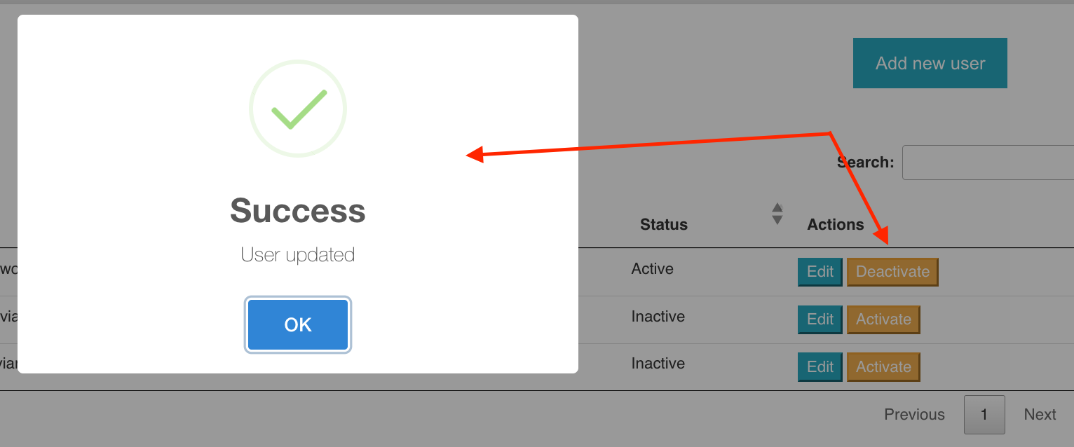 The Immunisation team can deactivate or activate a School Portal user as required. Select the orange activate or deactivate button to change the status of a user: