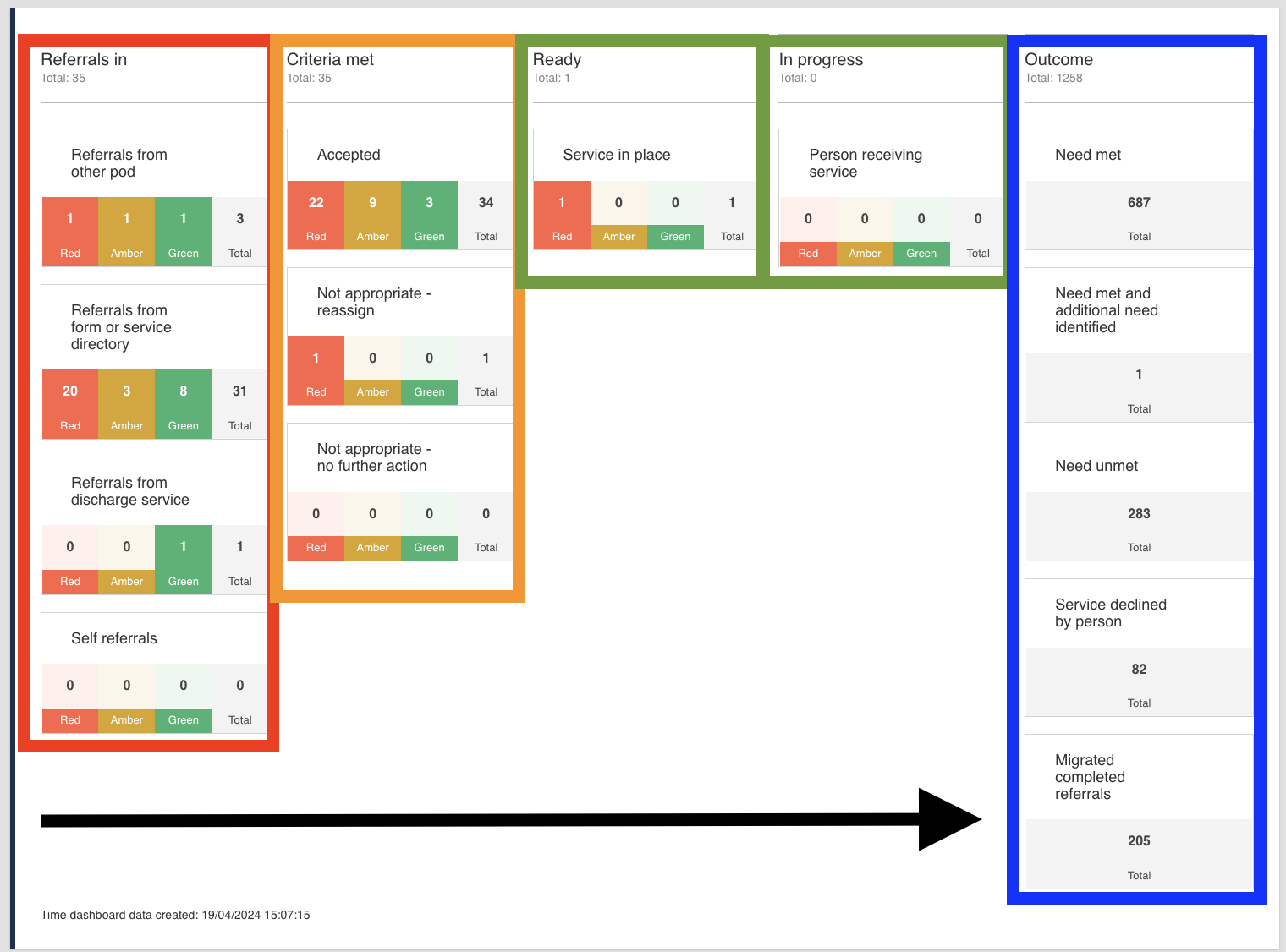 When you click on an organisation’s Pod (Pathway), you will be taken to the Pod dashboard. The Pod dashboard summarises all the referrals assigned to the organisation.