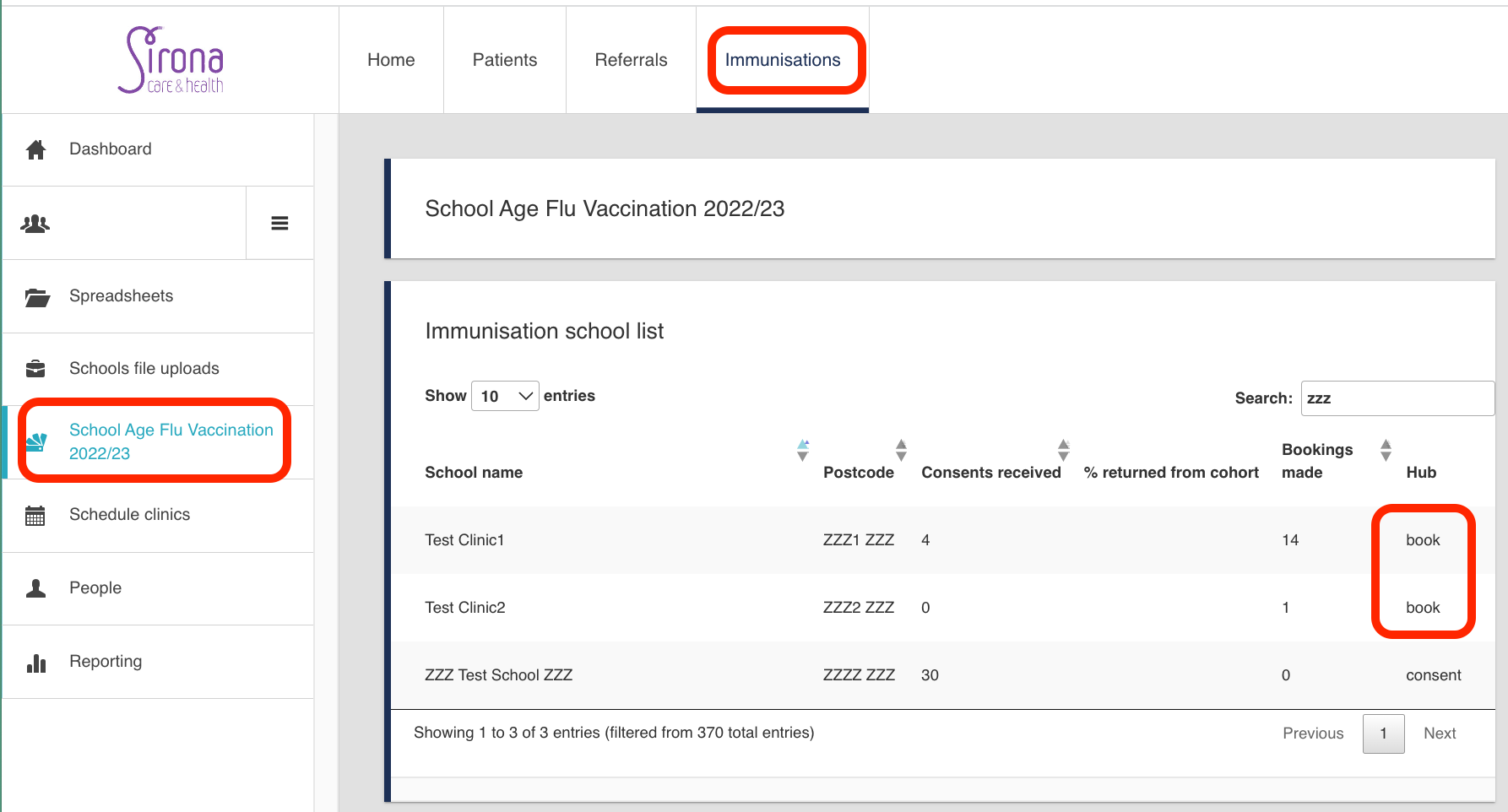 To view a list of bookings at a clinic venue, use the Immunisations page and select an immunisation programme. Then select the clinic venue you want to view.