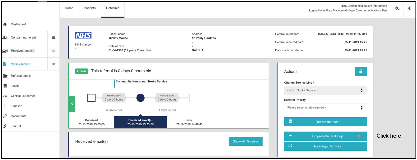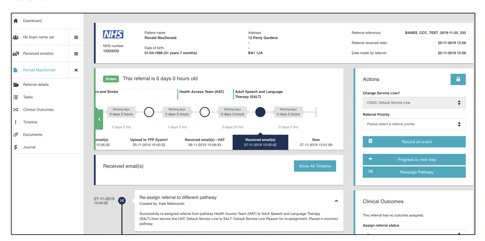 Once a referral has been reassigned, it will appear in the pathway dashboard (see How to view referrals on the Pathway Dashboard).