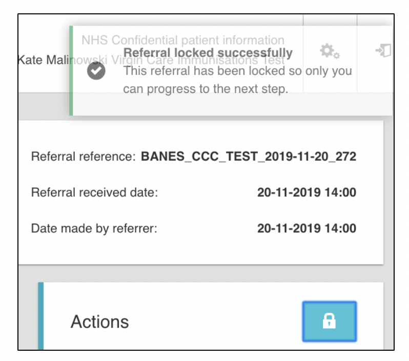 The lock icon on the right side lets you lock a referral while reviewing and editing it. After you complete this, you can unlock the referral so other users can access it.