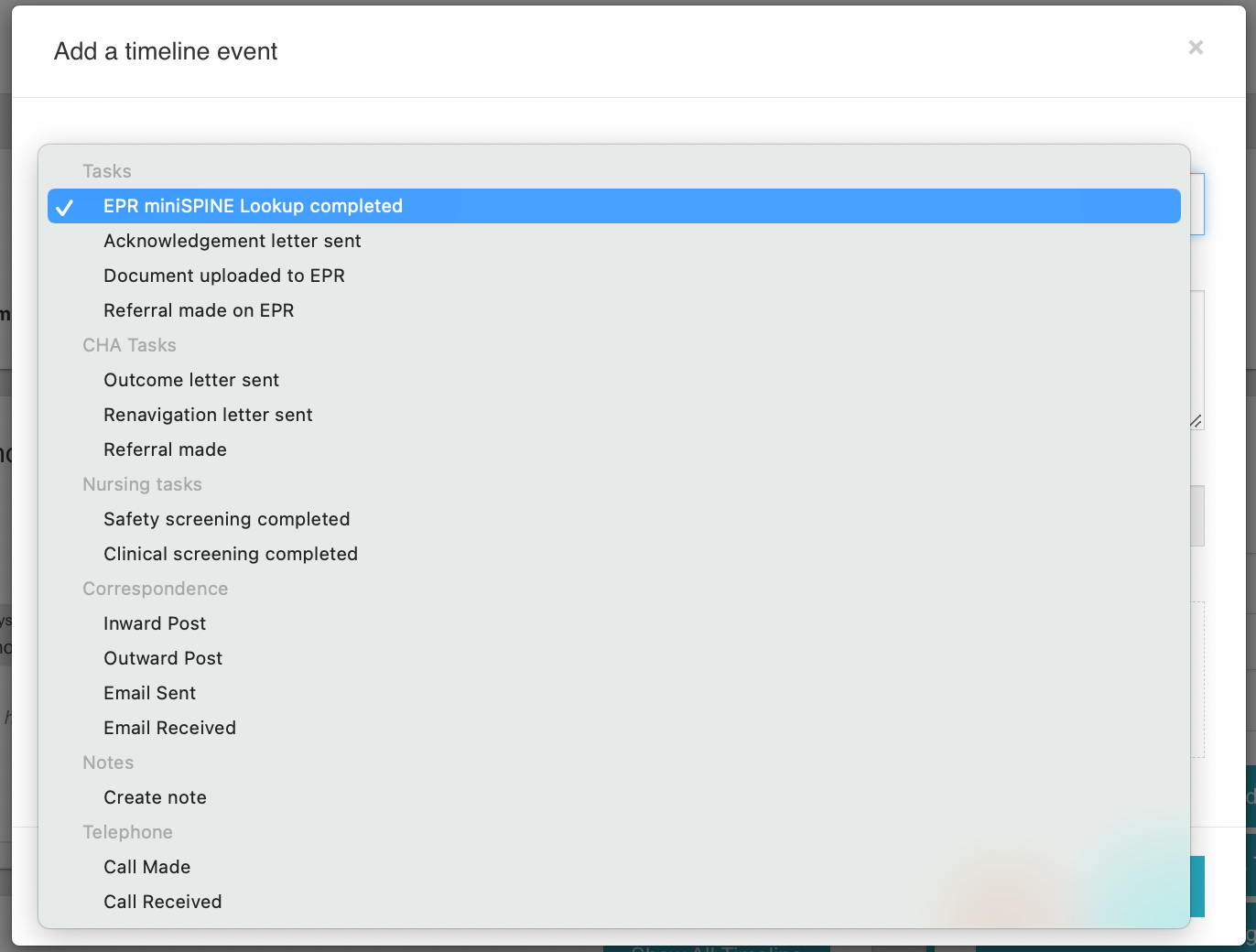 An event can be a letter sent, a document uploaded, a call made, or an email received.