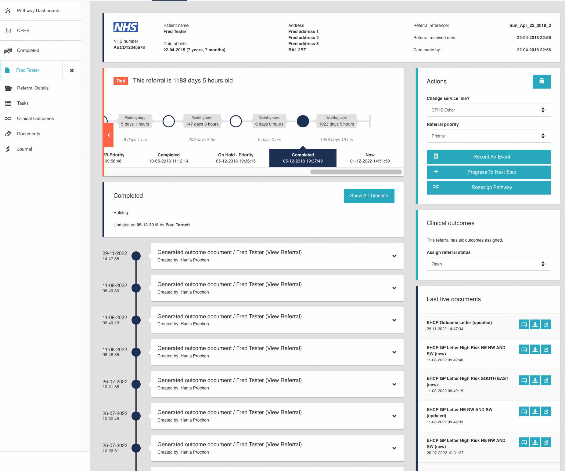This change will be recorded as a timeline event. The timeline event will include the date, time, by whom the referral was reassigned, and which pathway it has come from.