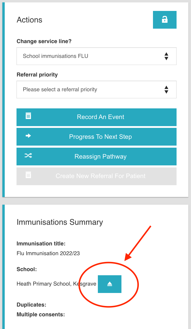 Open the child's referral and look at the Immunisations Summary section on the right.