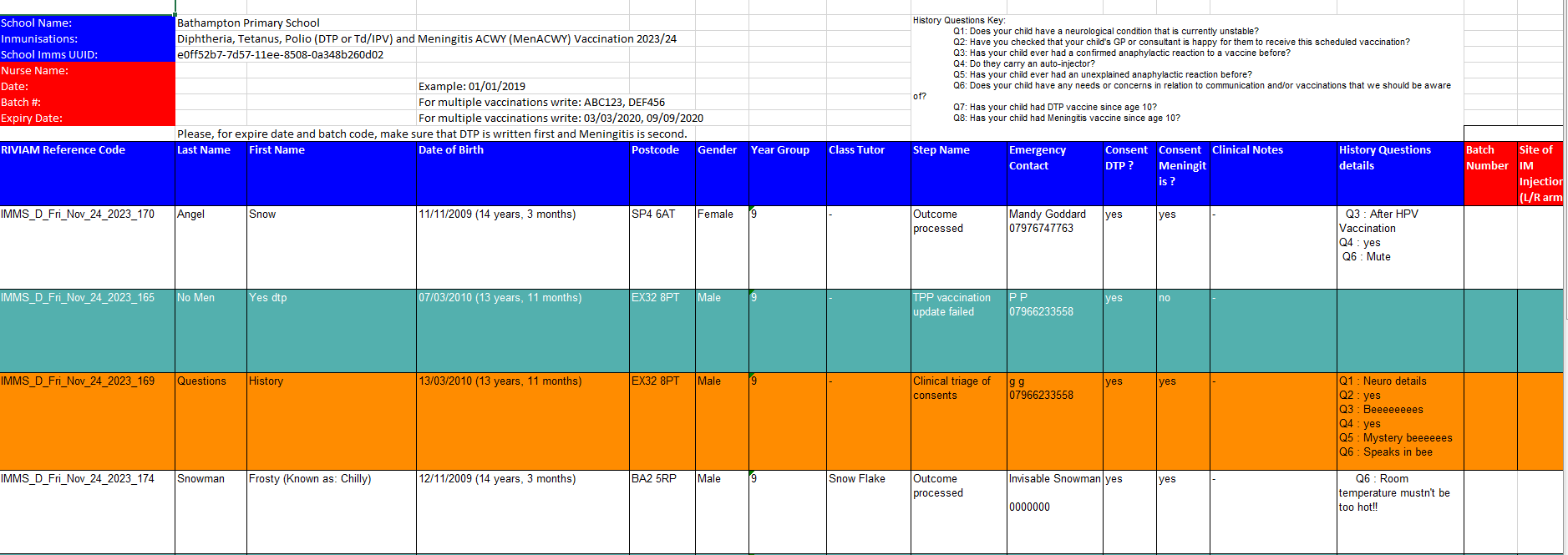 Each child in the school will also have their patient record timeline updated to show that they have been immunised. This is for all immunisation types (Flu, HPV, Men ACY & Covid).