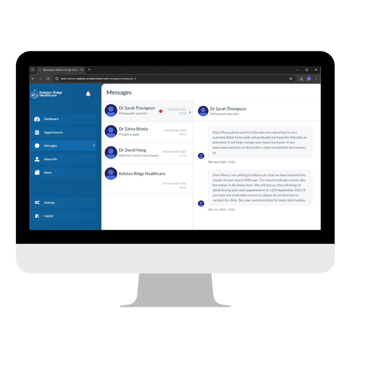 The Messages page lets you view email and/or SMS communications between you and the healthcare provider. Each communication has a date and timestamp associated with it.