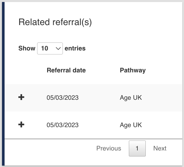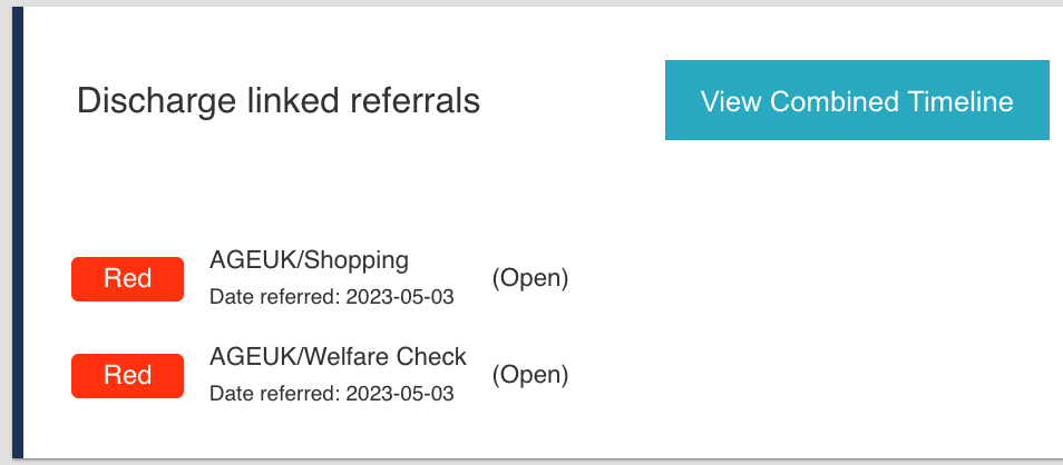 - A list of related referrals that were created via the Discharge Service.