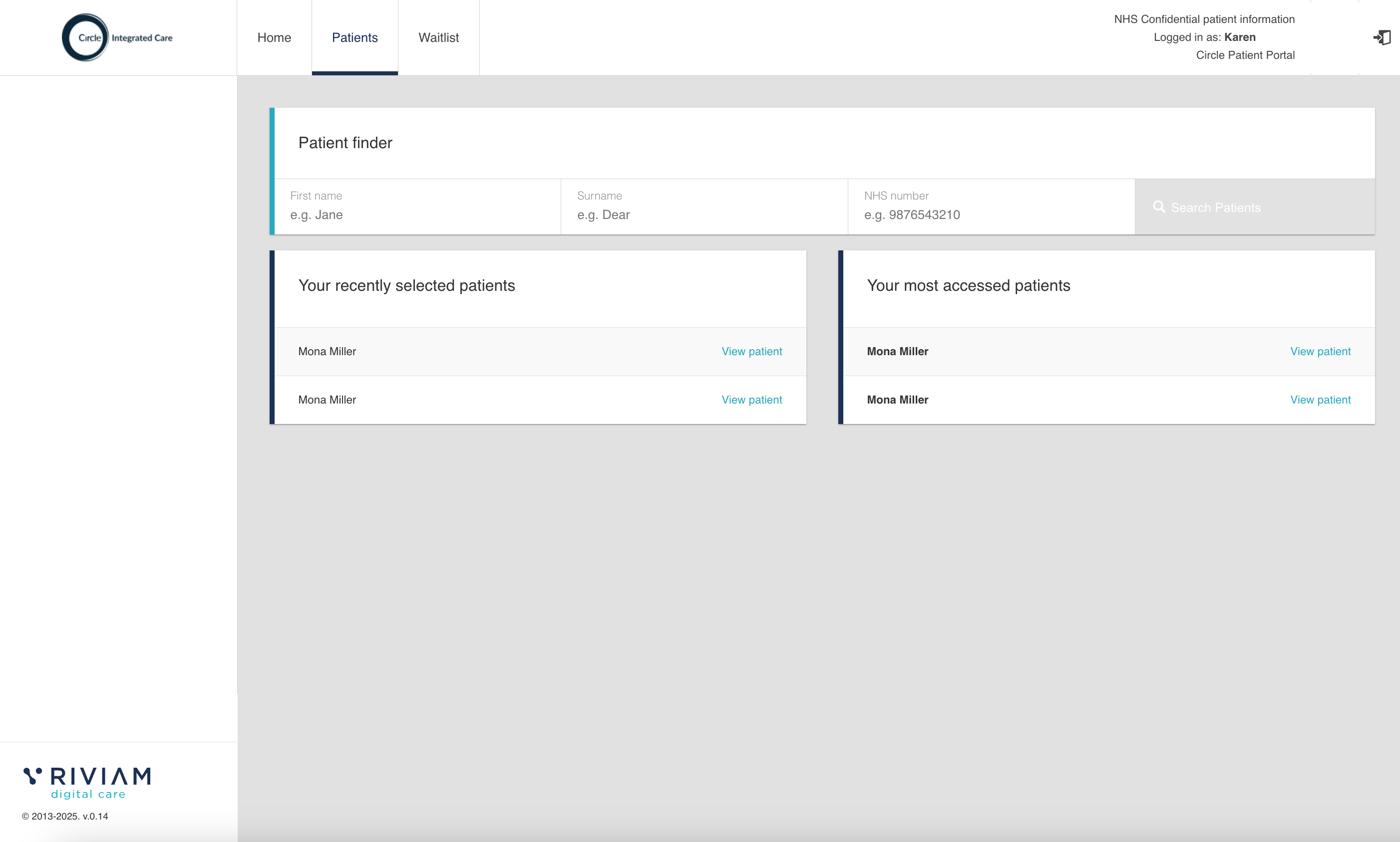 To access a patient listed in the recently selected patients or the most accessed patients, please select View patient to open the patient record.