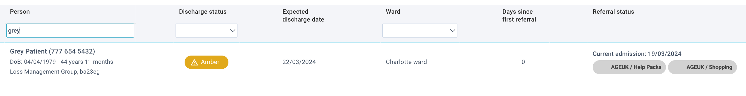In the Discharge dashboard, you will see the list of patients with a Discharge referral. You can search by name, discharge status, and Ward. If the user clicks on a referral, it will open another page giving more detailed information. Image: ...