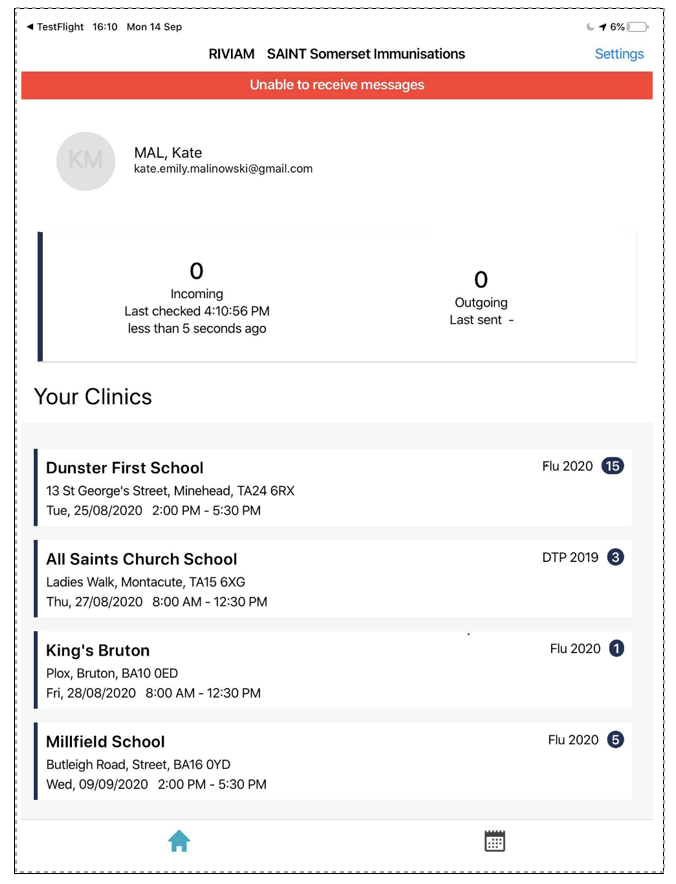 At the end of a clinic session, ensuring that all outcomes have been sent to RIVIAM is important. On the Home Page, there are two counts of messages - incoming messages and outgoing messages. These numbers show a user what messages are incoming into ...