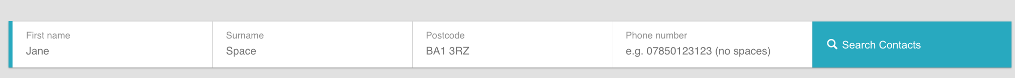 Enter the Contact's first name, surname, postcode or contact number. Click 'Search contacts'.