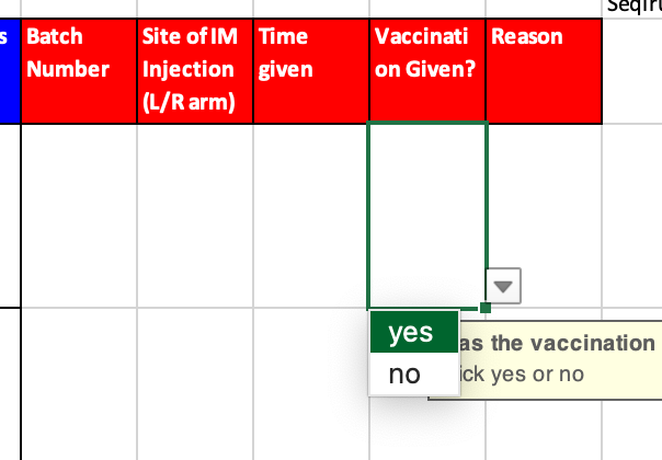 - Select yes or no from the drop-down to "Was the Vaccination Given?"