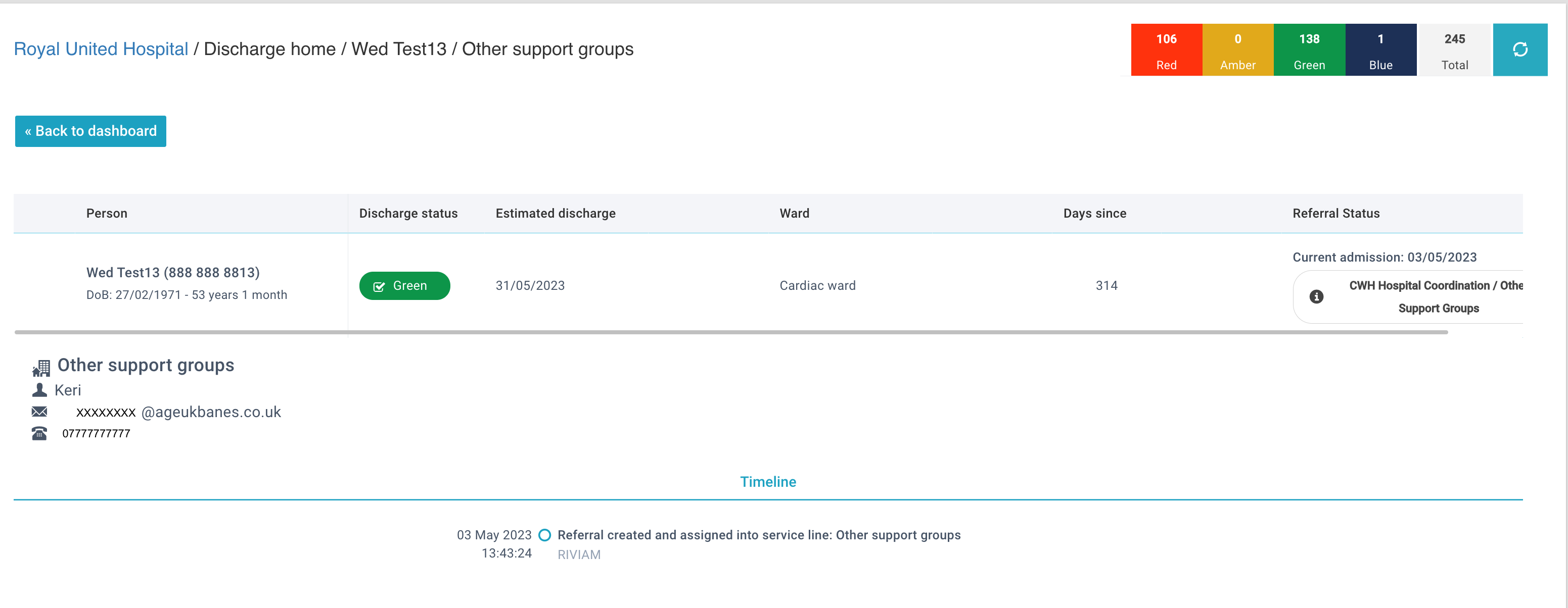 Non-discharge critical referrals will be shown in the dashboard as white. These referrals will have no impact on the overall discharge RAG status.
