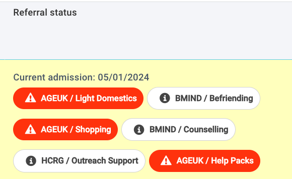 Referrals that have passed their expected discharge date and have discharge critical referrals with a red referral status, will be highlighted with a yellow background.