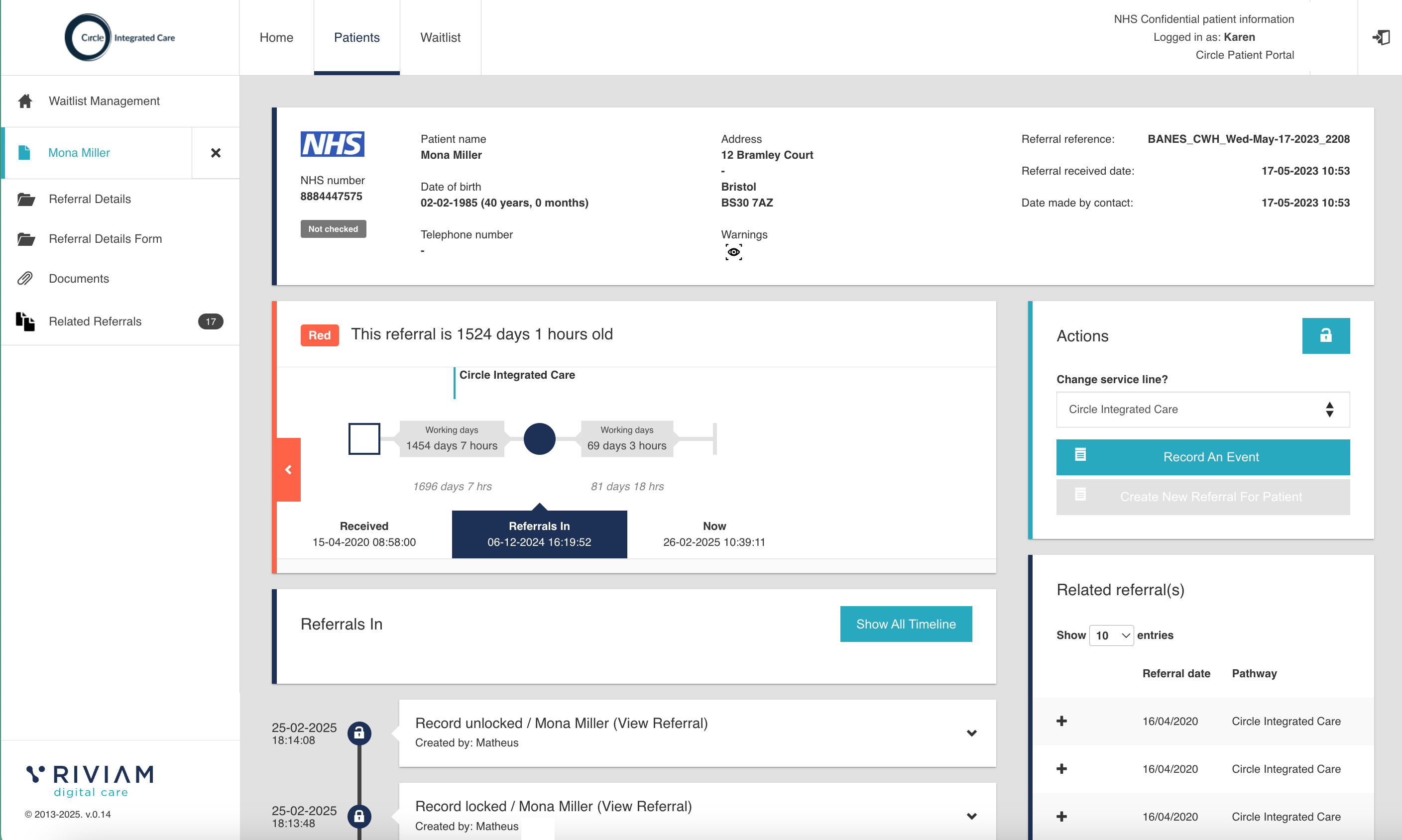 - Related referrals section: Any related waitlist referrals for this patient with the same demographics will be listed.