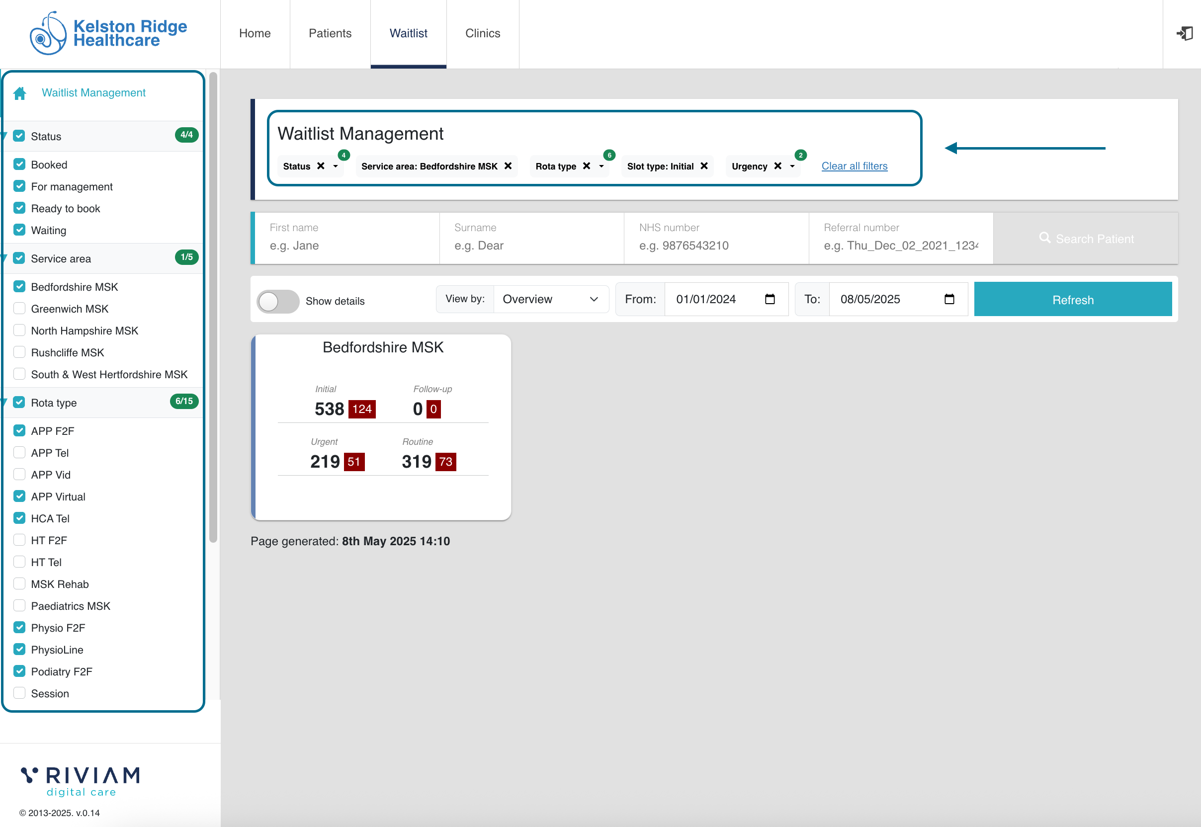 On the left-hand navigation menu, you will see a list of enhanced filtering options, which will allow you to choose which waitlist referrals you would like to filter by to refine your search. Filtering options are by: