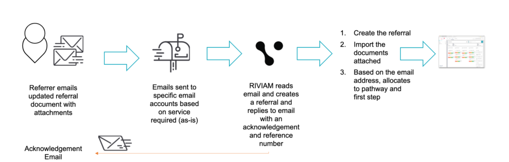 - On receipt of the email, RIVIAM can send a confirmation email with a reference code to the sender.