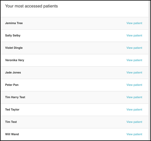 You can also view a list of your most accessed patients with a link directly to the patient record.