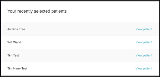 On the Patients page, you can also view a list of your recently searched patients, with a view that links directly to the patient record.