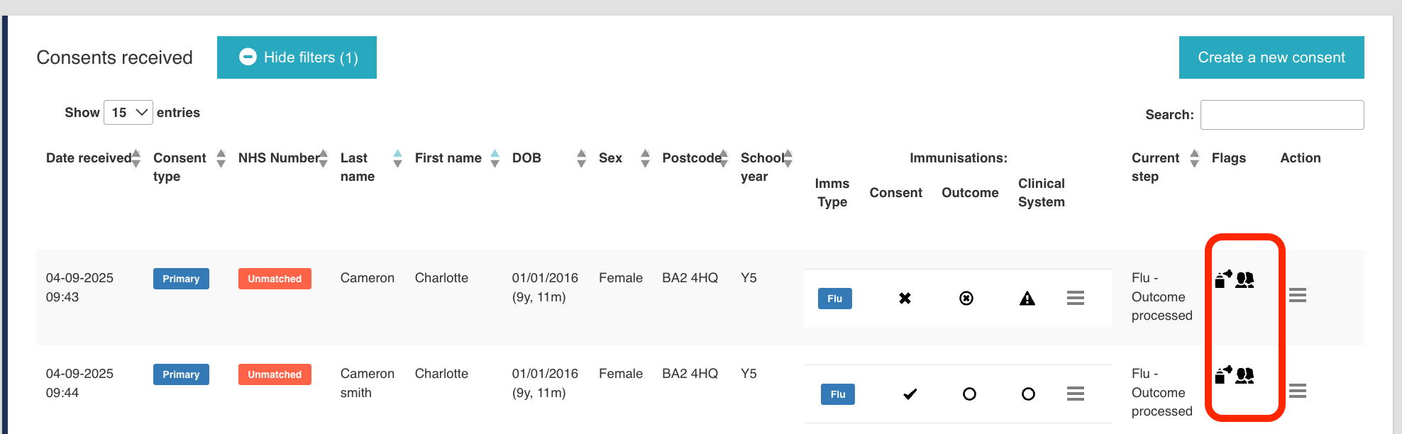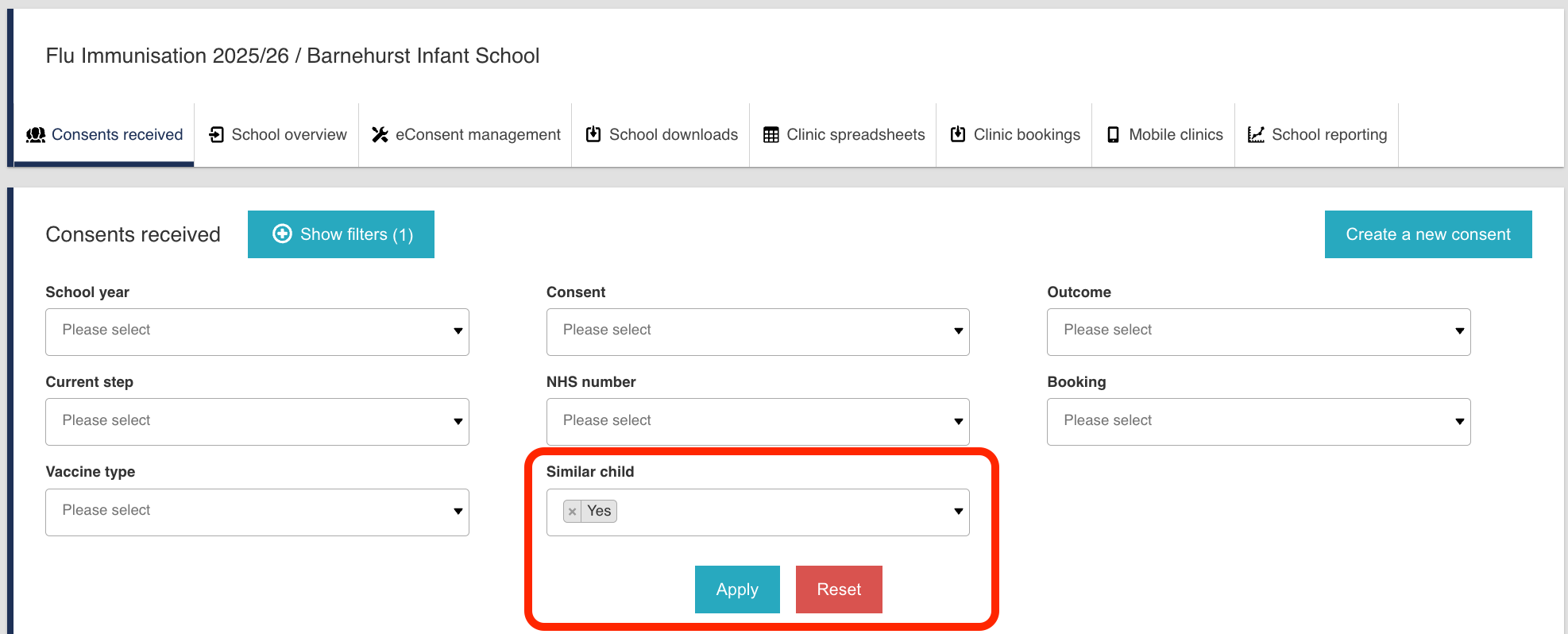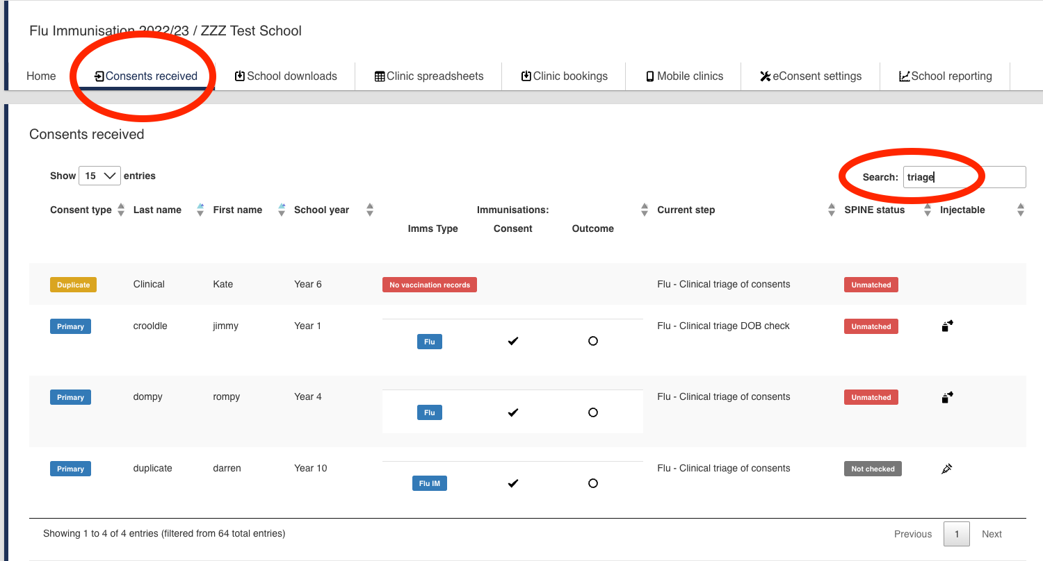Then you click on the specific clinic, and in the Consents Received tab, if you search on “triage”, you see which patients need what type of triage: