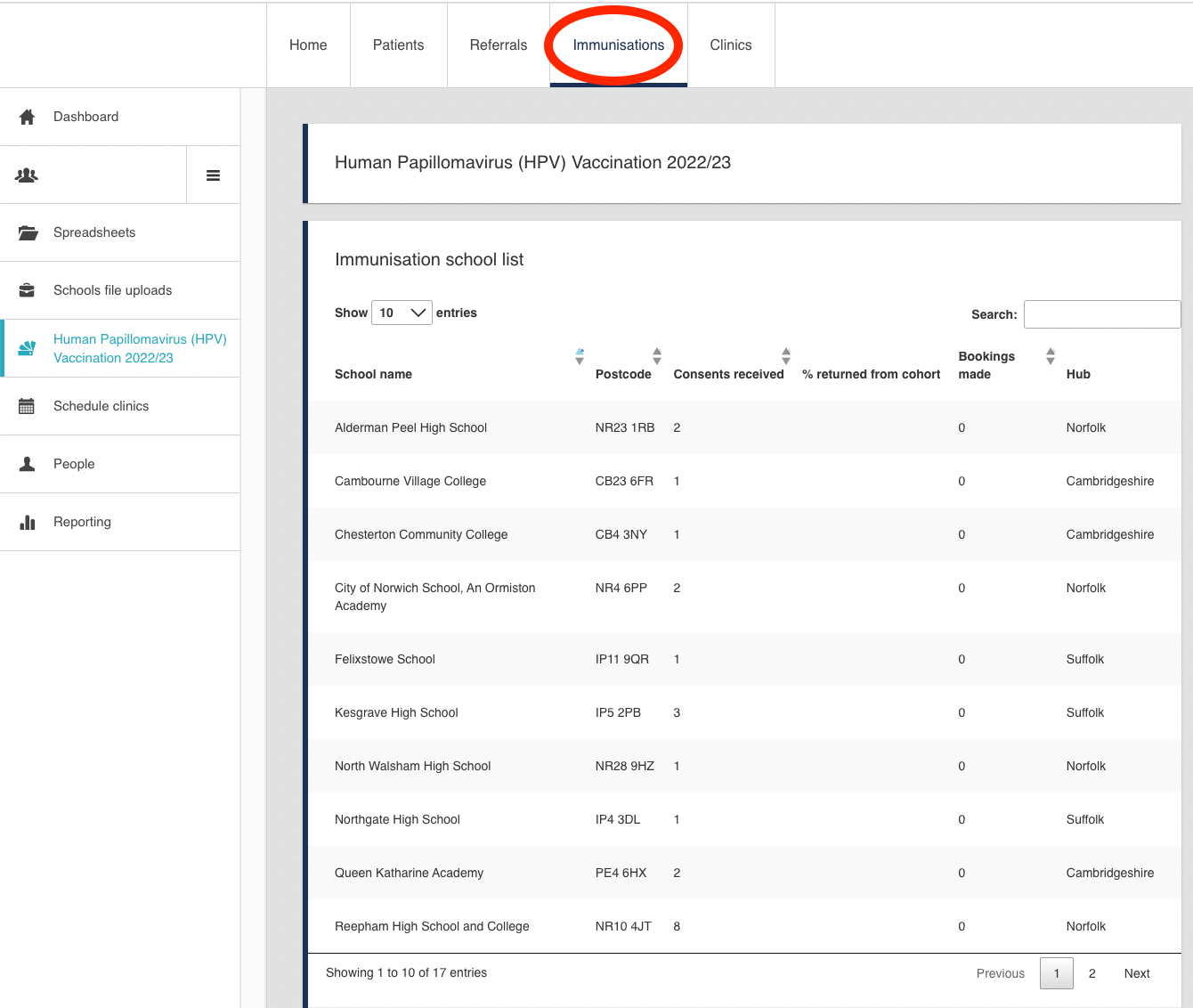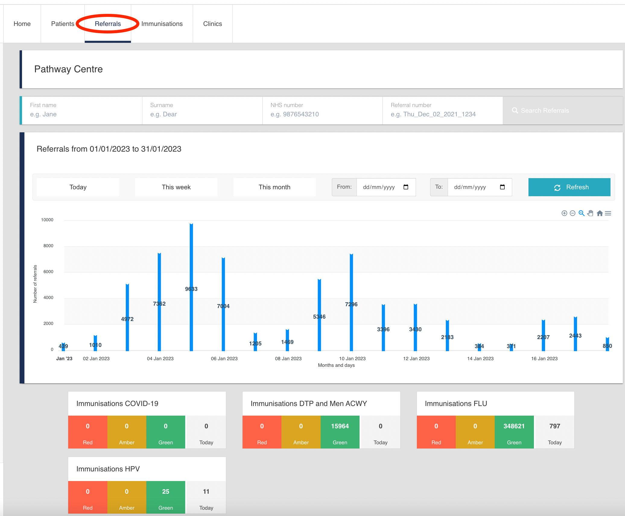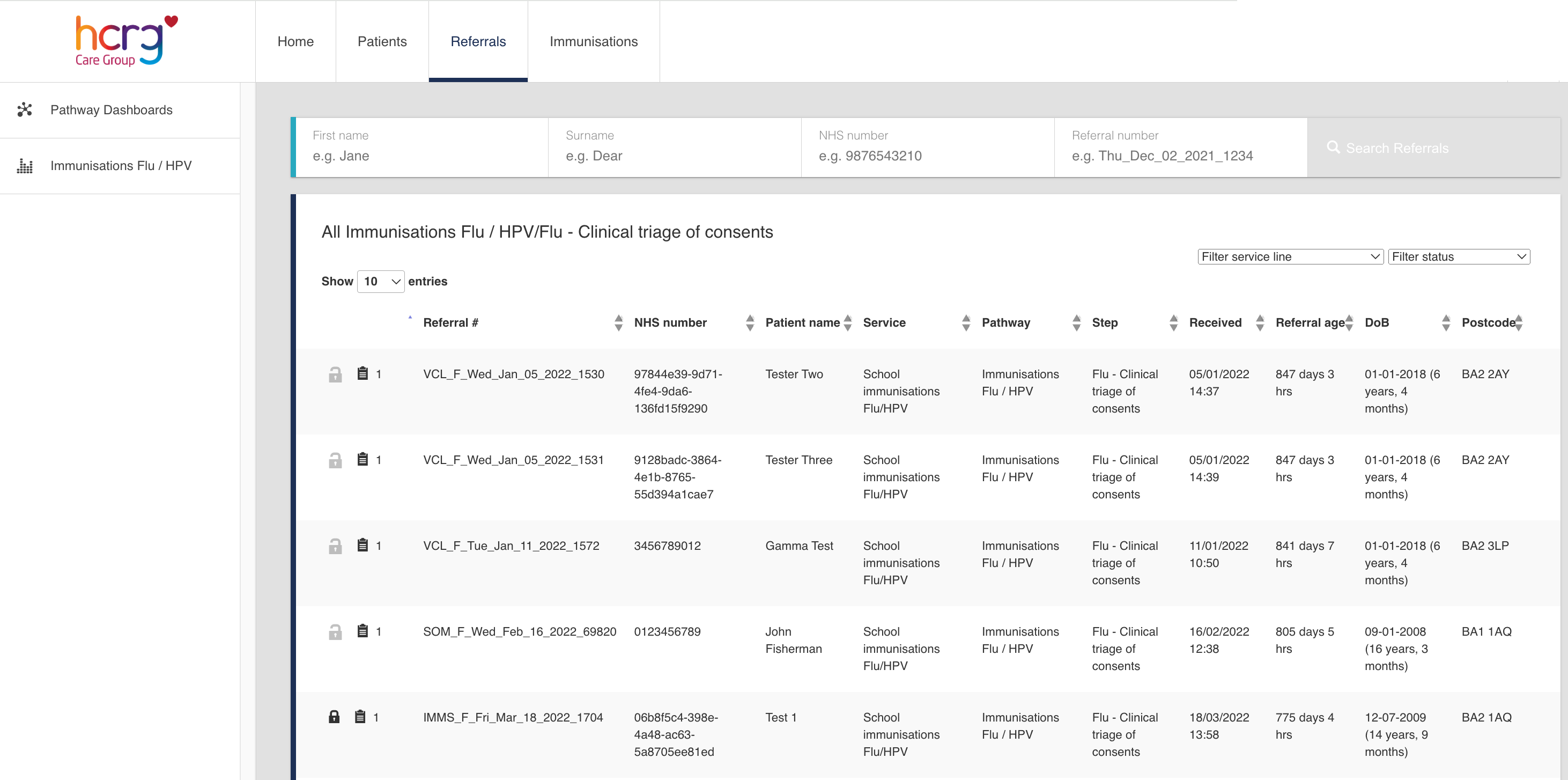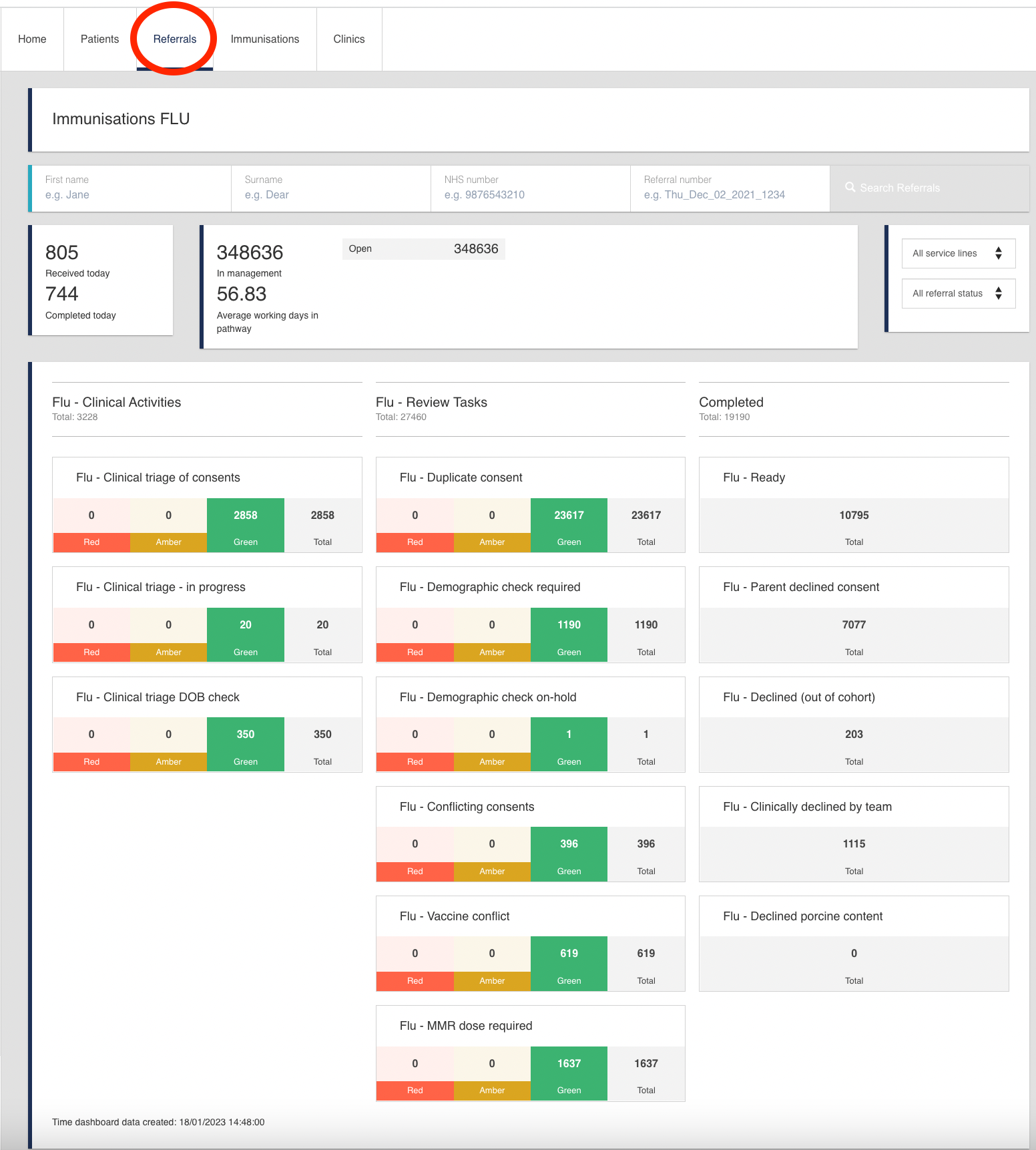 To view consents received across all schools and what the triage queues are, you start by going to the Referrals page dashboard: